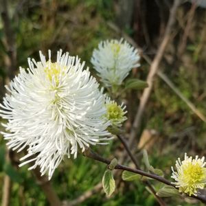 今日のお花 マンサク ご近所さんのお庭の白花マンサク ふわぁふわなのかな? 硬いのかな? 今度触ってみようーっと😊