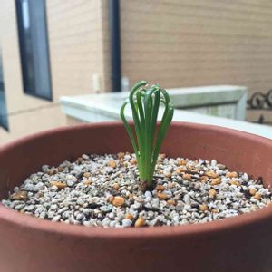 おはようございます 今朝はひんやりと雨模様 アルブカフリズルシズル 今年も伸びてきました。 日に当てたいクルクルになって欲しい!