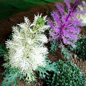 お出かけ先の植え込み ハボタン?繊細で美しい✨ こういうの好きです✨