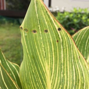 誰っ⁈ 食べたの? って思っていたんですが 昨日、インスタの他の方の投稿で 同じように食べられている カンナベンガルタイガーを見つけ… 調べてみたら 新芽がくるくる巻きで出てくるカンナ 巻いている状態で、食べられるから 葉が開くと、まっすぐな等間隔の穴が開く… ということでした😆 いや、だから、誰⁈ …なのかは特定出来なかったけど 被害にあった葉は二枚だけなので😅 カンナベンガルタイガー 葉の模様が美しく、 夏にぴったりです。