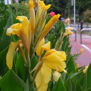 カンナ カンナ科属 遊歩道の脇で 群生で咲き始め ました。