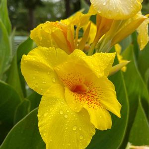 おはようございます🎵 カンナ咲いてます❗ 今日は少し蒸し暑い雨模様☂️