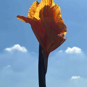 おはようございます♪ オレンジ色のカンナ 青空をパックに元気なの😀🧡