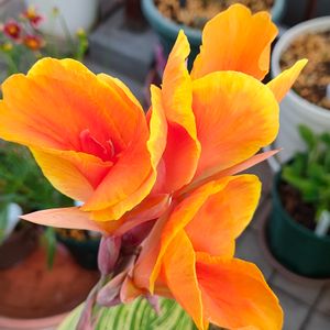 カンナ ベンガル🌿さん、 2023/08/01は蕾だったのに、 🧡花が咲いてました🥰 昨日の土砂降りで屋上の花達はなんかイキイキしているみたい😄