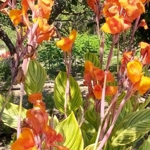 🍀🌻🪴💐🌹🌻🍀 🍀🧡カンナ🧡🍀 💐花言葉は(情熱),(快活),(熱い思い),(妄想) 💐カンナの花は6月頃から咲き始め、7~ 10月に開花のピークを迎えます 💐晩秋には葉や茎は枯れて球根(根茎)は土 の中に残り翌年は再び春から生育を始め 初夏以降に花が咲きます 💐カンナは夏に強く寒さには弱い花で、 草丈は40~200cmまでと幅が広く、背 丈が大きいカンナは花も葉も大きく見栄 えします 🍀🏵️🌼🌸🌼🌺🍀