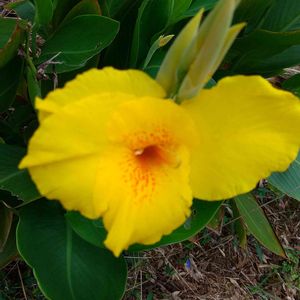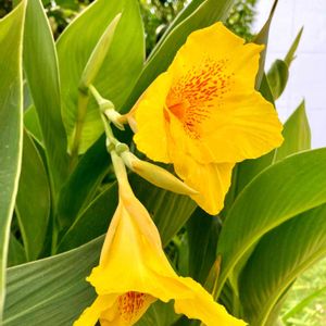 昨日蕾だったカンナが 綺麗に咲いています〜❣️🎶☁️