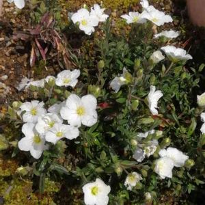 アレナリアモンタナは南西ヨーロッパの山岳地帯に自生する宿根草です。 昨年お迎えし切り戻して夏を越え再び綺麗に咲きました。 丈夫で栽培しやすく横に這いながら株を広げ花を咲かせます。 純白の花姿がとても可愛いです。 南西ヨーロッパ原産。 ナデシコ科アレナリア属の宿根草