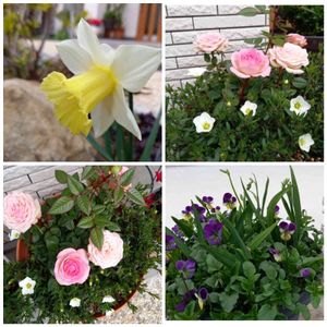 今朝の庭 バラの寄せ植えの白い花が咲き始めました。 ラッパスイセン見事!咲いてる場所が⁉️で、撮影しにくいのです。 霜焼けのフリージアとこぼれ種からのビオラが元気!元気です。