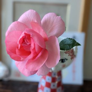 名もなき薔薇。 まだ小さいので蕾✂して一輪だけ残しておいた蕾が開き始めた咲き始めた頃に✂して花瓶に挿しておいたもの。だいぶ開いてきたけれど崩れない花姿素敵✨色合いも可愛い💞