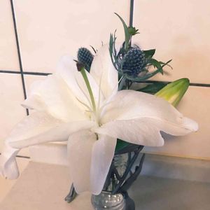 久しぶりに「お花をくれるお花屋さん」の話。 こんにちは〜、と挨拶をした瞬間、 小僧が大声で 「百合だ!百合だよ!ママが大好きな百合だよね❣️」 「あ、持って行きます⁉️」と カサブランカを持ったご主人。 「か、買います買います💦」と私。 ………やっぱり貰ってしまいました。 ただで……😅 こっそり思っちゃう。 でかした!小僧😆😆😆