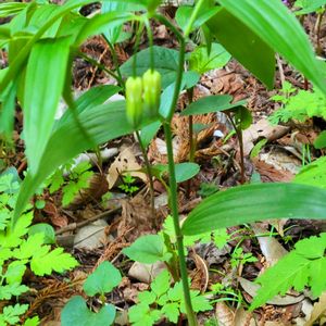 ウバユリ(姥百合)の新芽 ウバユリの花や実は皆さんご存じかと思いますけどこれは新芽です。 百合根は食べられるそうです。 東吾野の里山歩きにて