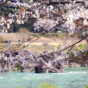 青磁色の木曽川と桜。 この色合わせ、たまりません。