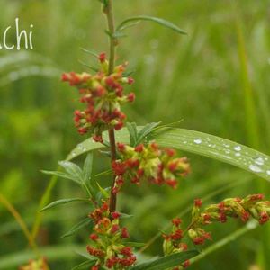 今日もおつかれさまでした… 台風は大丈夫ですか? 雨の止み間にいつもの散歩道… 雨粒の宝石を纏った雑草たちが輝いてました☘️🍀🌾✨ 「ヨモギ」の花が真っ赤に色づいて綺麗でしたよ😊👍😄
