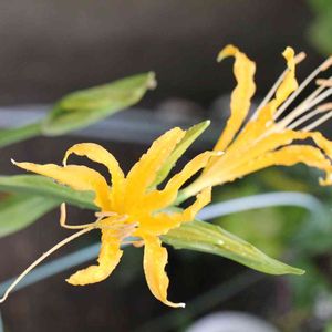 黄色のリコリスが雨☔の中、咲いたので小降りになるのを待って📷パシャしました。