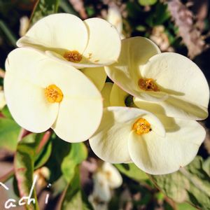 こんにちは… 今日のお花… 「ハナキリン」🦒 私が管理しているハナキリンは今花が付いていません😅 2月に赤塚植物園の「希少植物保存温室」で見た巨大ハナキリンです… 花は直径5センチはあったかな… みどりのまとめで投稿してます。 再投稿です🌼💮🍀