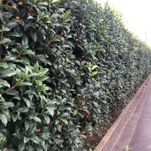 実家の近くの垣根。 中は栗の木や畑の作物が植えられています。 花が小さいのでわかりにくいですが、今の季節は香りで気がつきます🧡 それにしても延々と続くこれが全部キンモクセイだったとは🤔