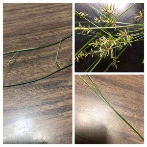 ゴンゴンさんの熱烈リクエストにより、「失敗作」のカヤツリグサからの「カヤ」(左)を😂 去年ちゃんとしたやり方を教わって、やり方ももう一度確認したはずなのにこのていたらくです😓 リベンジ用にまだもう少し生えてるのとってありますが、無事に今年「正しい」カヤは作れるのでしょうか😅