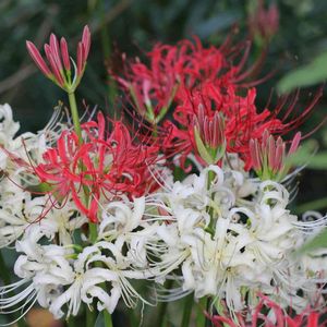 彼岸花 (赤・白) ちょっと密に咲いています。