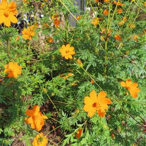 ユリオプスデージー 春から長く咲いてくれました。夏は休んでいましたが、また咲きだしました。なんか花びらがバラバラ〜🤣 後ろはアメジストセージ。