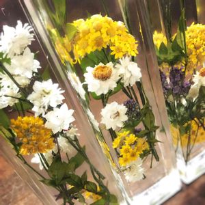 小花を中心にハーバリウムを作りました☆ ※こちらの作品は25日(土)26日(日)開催の二子玉川クラフトフェアにて販売致します☆