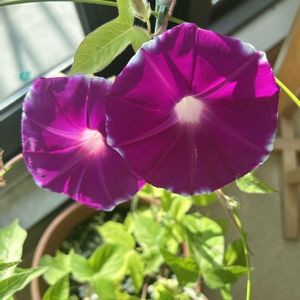 施設のフロアにアサガオが やって来ました💜 昨夜は蕾だっのが,今朝は、3輪咲いてました。アサガオを見ると、夏って感じますよね😃 🏷️金曜日の蕾たち 🏷️青い花で夏祭り2025 🏷️青い花マニア 🏷️癒しの紫♡ 🏷️つなぐ、つながる