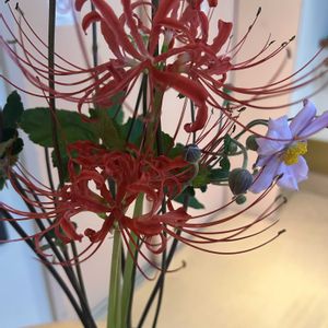 こんばんは🌙 施設のお庭にも、いつも間にか 「ヒガンバナ❤️」が咲き出しました 秋明菊もあります。 フロアに飾って見ました。 うん,いい感じ😃 🏷️今日のお花 🏷️真っ赤な火曜日 🏷️可憐な火曜日 🏷️つなぐ、つながる