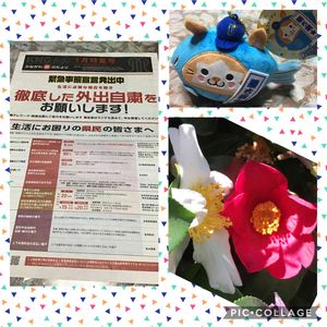 今日、見た紅白の椿、おめでたくていいかなと思ったら、新聞のチラシに神奈川県から緊急事態宣言で外出自粛要請のお知らせが❗️。そこで、子供のベイスターズグッズを借りて、コロナに勝ちタイ。と思います。