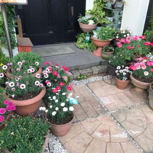 おはようございま〜す🌸 汚庭改造中に雑草の中から長年放置のテラコッタが出て来たので玄関に設置 このテラコッタめちゃくちゃ重い💦 外出せずにお金もかけずに、お家園芸楽しんでま〜す🎵