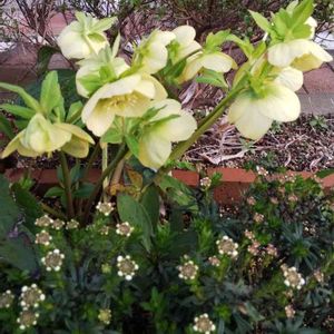こんばんは🤗 昨日投稿したクリスマスローズと同じ札の子。 これは、札の通りの色の子です。同じクリスマスローズとは思えないですね。 やっぱり昨日のは札の付け間違いなんだろうね💦 足元にはイベリスの蕾が膨らんできました。 イベリスも大好きな花❀ 早く満開になってほしいな〜。