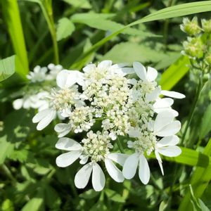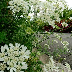 今日のチームホワイトはオルレア オルレア?オルラヤ? どっちが主流なんでしょーね笑 数年前に一株植えてからは毎年こぼれ種で会えます、てか、むしろ間引いてます😁 こんな繊細な姿のくせに、芝生からでもお構いなしに発芽するんで💦 アルメリアとの色のコントラストもいい感じ♥️