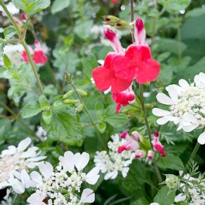 チェリーセージ❤️とオルラヤ🤍 赤と白の組み合わせも好き😊🎶