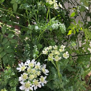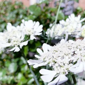 ご近所のバラ友🌹ロザリアンさんが昨年オルラヤ ホワイトレースの種をくださいました バラの足元に植えてみました。軽やかなお花です