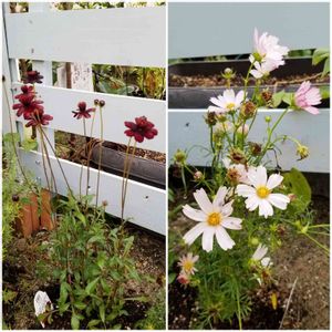 苗からのコスモスたち✨ 全然咲き方が違う〰️ 花が終わったまま汚い状態で撮ってしまいお見苦しくてごめんなさぃ💦