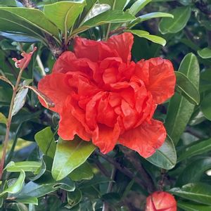 ハナザクロ(花柘榴)🧡❤️ 鮮やかな朱色の八重咲とアセロラか何かの 実に間違われそうな蕾が素敵💓 しばらく地味な色の投稿だったので さらに朱色のハイビスカスとサンパラソル 午後はピアノのレッスン〜🎹🎼 今から少し練習しよう だんだん頭も指の動きも鈍ってきたような気がする😢