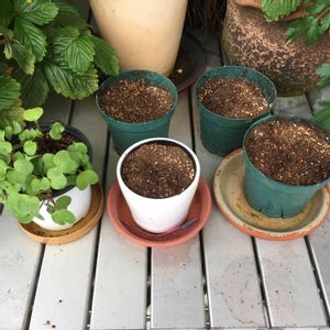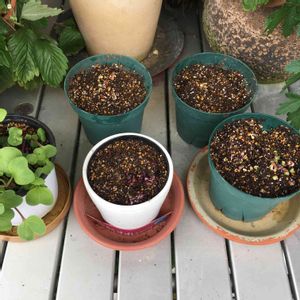 カイワレ大根栽培サイクルⅡ-17。 右奥鉢にも昨日種を蒔きました。
