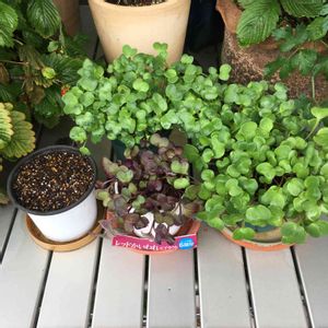 カイワレ大根栽培サイクルⅡ-21。 手前中央鉢、大阪四十日大根の土は全部入れ替えしました。