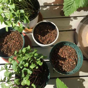 カイワレ大根栽培 3つの鉢に種まきしました。この後種まき培土を少し掛けて育てます。