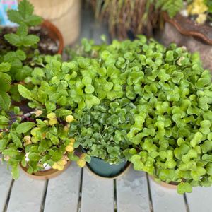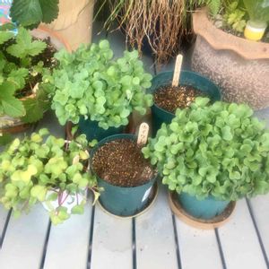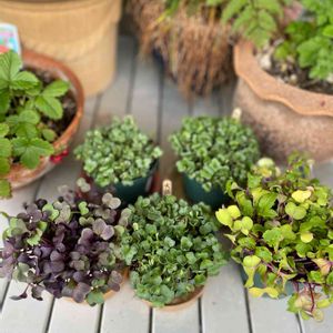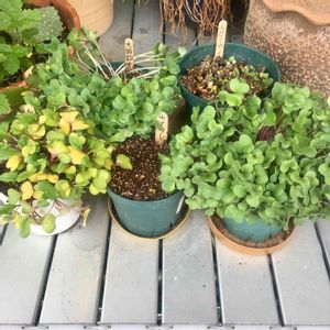 カイワレ大根栽培サイクルⅢ-12。右端カイワレ鉢には青虫が住み着き双葉を喰い荒らしていました。