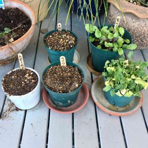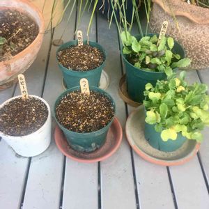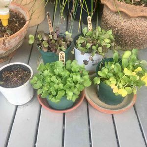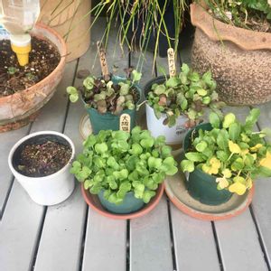 カイワレ大根栽培サイクルⅡ-221。強風で後ろ右鉢が落ちて鉢を取り替えました。