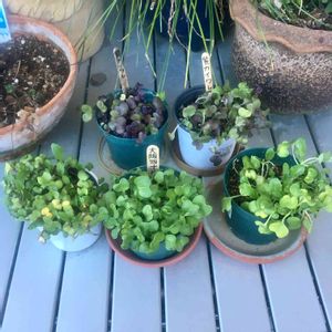 カイワレ大根栽培サイクルⅡ-196。昨日紫カイワレ大根を一部収穫しました。