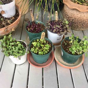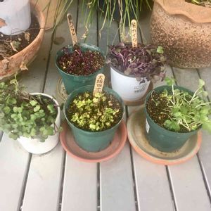 カイワレ大根栽培サイクルⅡ-174。昨夕右前カイワレ大根を一部収穫。