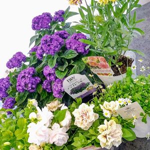 癒やされに花屋へ🏠 紫の花、「ヘリオトロープ」のブライトブルー🌼 その右隣は「ガイラルディア」のコーラルスパーク🌼 左下の「インパチェンス.シルエット」のアップルブロッサム🌼 「ペチュニア.ホイップマカロン」のモカブラウン🌼 小さい白い花がかわいい「ペビリアンデージー」🌼 小型の紫陽花のようなヘリオトロープの香りは、 まるでバニラの様に甘くてびっくり👀 そこから次々火がついて5種類購入🌼 どう植えようかな😍