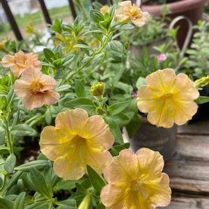 サントリーフラワーズさん ミリオンベルプチホイップ ストロベリー&マーマレード✨ 植え付け後、摘心✨✨ 可愛い花は飾って💕💕 あとは挿し芽します🥰🥰✨✨🌱