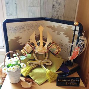 今日は5月5日子供の日🎏 今年もお気に入り兜とお花は関係ないけどお家に咲いているマトリカリア🌿 菖蒲💜があれば良かったのですが🤭