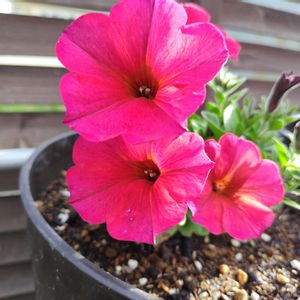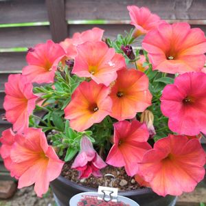 サカタのタネ ビューティカル ペチュニアとカリブラコアを交配して誕生した品種。ペチュニアの弱点であるベタつきや匂い、雨に弱い点が克服されています。 独特な花色とツヤがあり、近年人気の植物です。