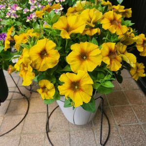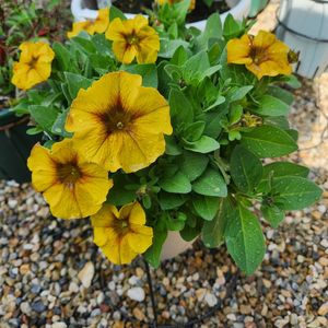 ペチュニア ビューティカル キャラメルイエロー ☔大雨☔の中でも 元気に咲いてくれました~🌼その2
