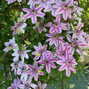こんにちは😃 クレマチスが咲き始めました🌸 クレマチスネリモーザ パンテス系 この場所に定着して、 3.4年が経つと思います😊 去年より、花数が多いです🌸 嬉しいです😆😆😆 我が家には、この色の配色で、 違うクレマチスが他に3株あります🤣🤣 「安かったのよ」と買って来た、母…💁♀️ 「この色いいわねー」と、母…🤦♀️ 「この色あったのね🤭 わからなかったわ」と、母…🙅♀️ 「この色、私が買ったの」と、母…🤦♀️ ↑ このように、ドンドン増えていきました🤷♀️ 品種が被っていないところが、スゴイ⁉️ このネリモーザ、 つるバラ『新雪』とコラボとして 近くに植えてありますが… 開花時期があいません😫 バラとクレマチスの コラボは、憧れですが… このパンテス系は、花弁が大きいので バラの消毒がかかってしまうと、 花弁へのダメージが、大きいです。 (バラが中心の庭なので…) 去年は、その被害が多く、 途中から咲かなくなってしまった パンテス系がありました。