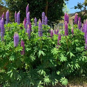 ルピナスの森♫ ルピナス全体像。モリモリと旺盛に育ってくれました😄 ここは去年までキクが植えてあって、そろそろ嫌地になるからとお義母様が移動させて、豆科のルピナスの苗床になりました。 農作物程ではないけれど、お花も嫌地(連作障害)が起こるみたいです。(薔薇の嫌地は有名ですよね🌹) 今年ルピナスがここまで旺盛になったのは、豆科にとって新しい場所で気持ちが良かったのかもしれません☺️✨