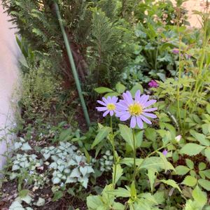 都忘れ『青空』 2年目の株。 1年目に枯れそうになり、この場所に移動。 なんとか枯れずにすんだけど、あまり元気ではない。 前に育てた品種不明の都忘れは、すごく丈夫だったのに😥 🍀都忘れ『青空』🍀 2018年4月 HCで160円