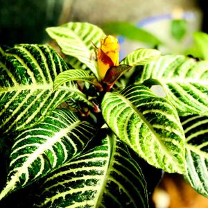 熱帯アメリカ産、175種だって〜 玄関先に出したアフェランドラ・スクアロサの園芸品種‘ダニア’。もうすぐ咲くよ〜✨ 葉っぱは光沢のある濃緑色で葉脈に銀白色の斑が入っています。他に園芸品種のシルバー・クラウドやアフェランドラ・アウランティアカなんかがあるそうです。